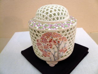 網目模様が美しい香炉です。網目一つ一つを彫る作業がすばらしいと思います。