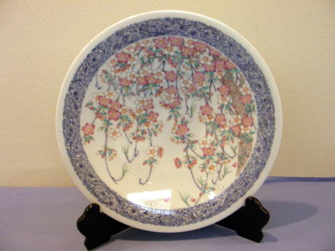 桜を前面に描きながら、柔らかい雰囲気と優しい色合いがバランスよく配置された一品です。周囲の赤書の桜がまたアクセントになって、皿に味わいを加えていると思います。